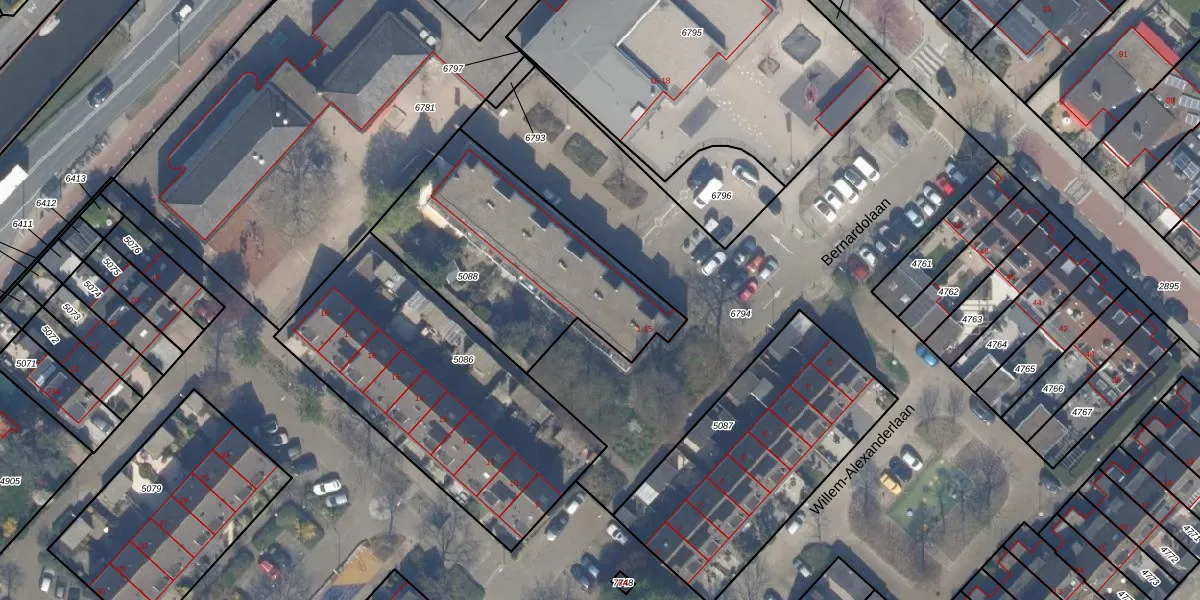 Het perceel waarop Bernardolaan 6 staat heeft een oppervlakte van 1021 m². Dit is een zeer groot perceel. De perceeloppervlakte wordt geregistreerd door het Kadaster. Gedetailleerde informatie over de maten van dit perceel kunt u vinden in het rapport Kadastrale kaart met maatvoering van Bernardolaan 6.
