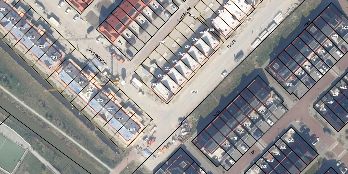 Gebruik de zoekbalk of klik op een perceel voor informatie over de adressen binnen dit perceel.