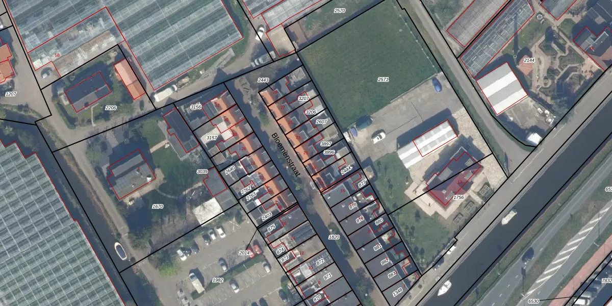 Het perceel waarop Bloemenstraat 21 staat heeft een oppervlakte van 91 m². Dit is een klein perceel. De perceeloppervlakte wordt geregistreerd door het Kadaster. Gedetailleerde informatie over de maten van dit perceel kunt u vinden in het rapport Kadastrale kaart met maatvoering van Bloemenstraat 21.