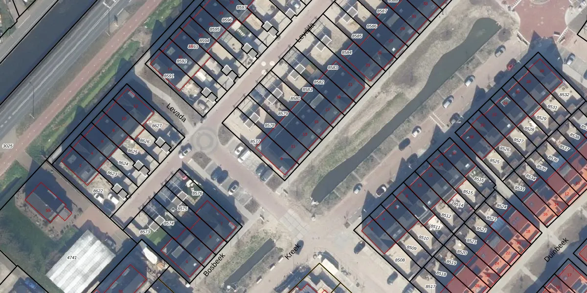 Gebruik de zoekbalk of klik op een perceel voor informatie over de adressen binnen dit perceel.