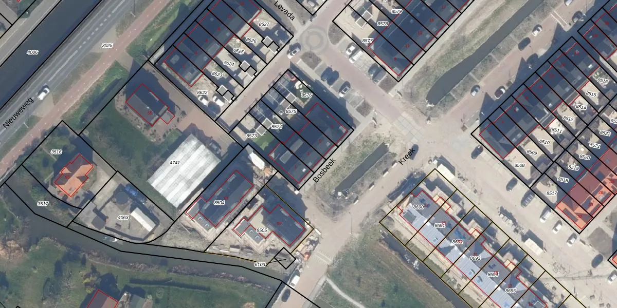 Het perceel waarop Bosbeek 3 staat heeft een oppervlakte van 166 m². Dit is een middelgroot perceel. De perceeloppervlakte wordt geregistreerd door het Kadaster. Gedetailleerde informatie over de maten van dit perceel kunt u vinden in het rapport Kadastrale kaart met maatvoering van Bosbeek 3.
