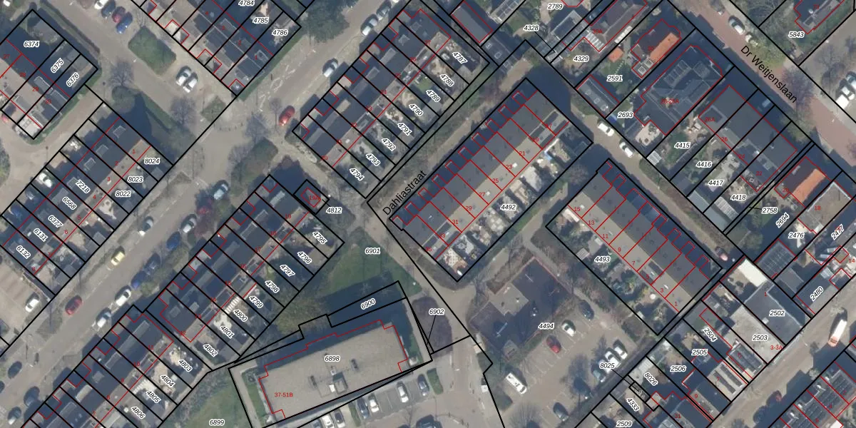 Het perceel waarop Dahliastraat 33 staat heeft een oppervlakte van 996 m². Dit is een groot perceel. De perceeloppervlakte wordt geregistreerd door het Kadaster. Gedetailleerde informatie over de maten van dit perceel kunt u vinden in het rapport Kadastrale kaart met maatvoering van Dahliastraat 33.