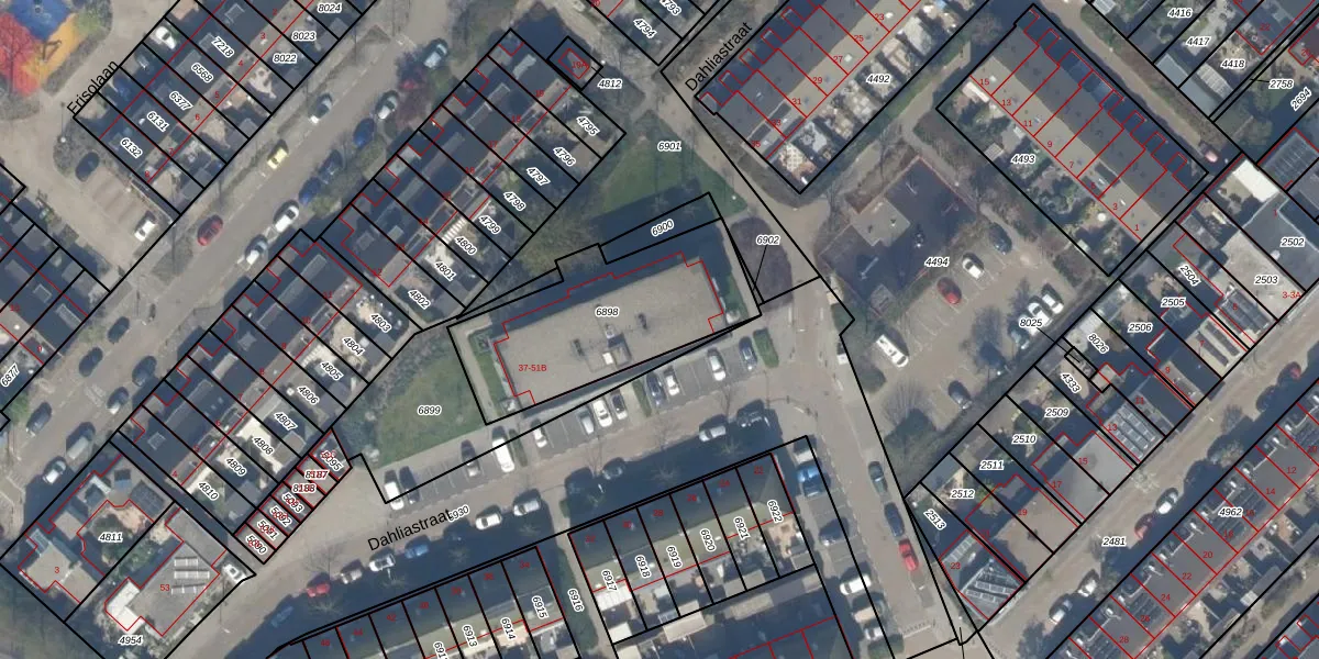 Het perceel waarop Dahliastraat 47-B staat heeft een oppervlakte van 740 m². Dit is een groot perceel. De perceeloppervlakte wordt geregistreerd door het Kadaster. Gedetailleerde informatie over de maten van dit perceel kunt u vinden in het rapport Kadastrale kaart met maatvoering van Dahliastraat 47-B.