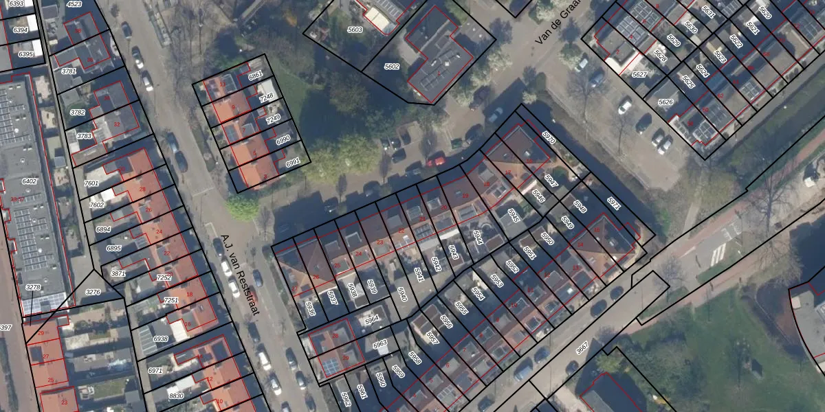 Gebruik de zoekbalk of klik op een perceel voor informatie over de adressen binnen dit perceel.