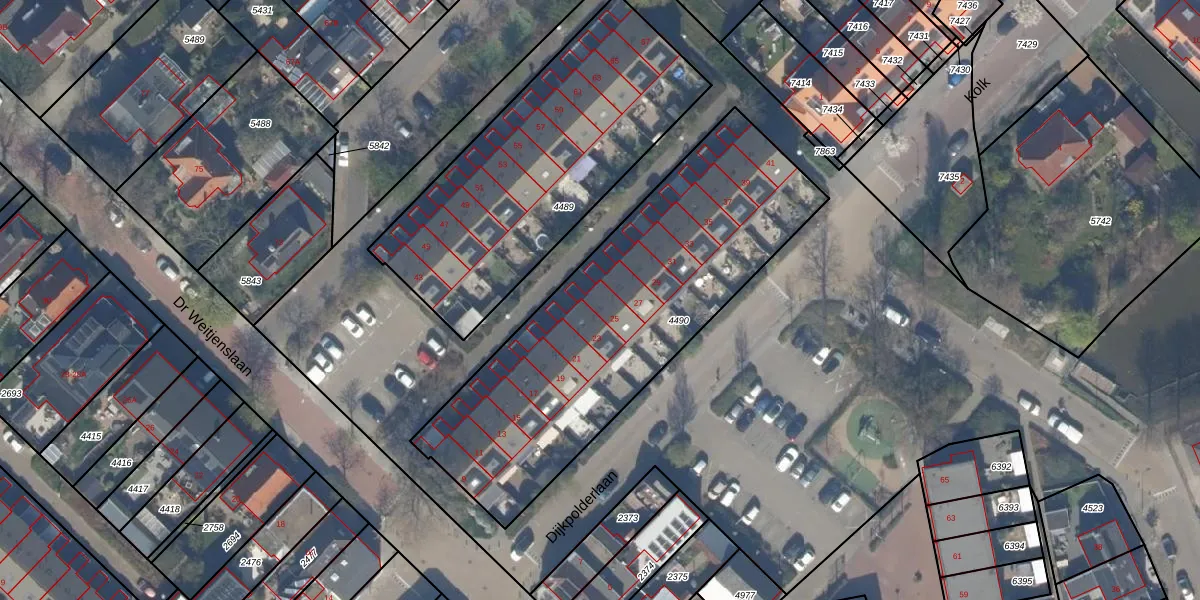 Het perceel waarop Dr Weitjenslaan 25 staat heeft een oppervlakte van 1662 m². Dit is een zeer groot perceel. De perceeloppervlakte wordt geregistreerd door het Kadaster. Gedetailleerde informatie over de maten van dit perceel kunt u vinden in het rapport Kadastrale kaart met maatvoering van Dr Weitjenslaan 25.