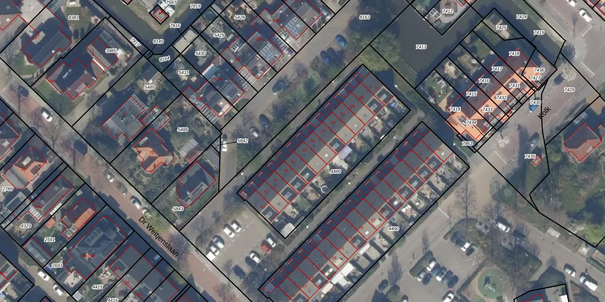 Het perceel waarop Dr Weitjenslaan 53 staat heeft een oppervlakte van 1304 m². Dit is een zeer groot perceel. De perceeloppervlakte wordt geregistreerd door het Kadaster. Gedetailleerde informatie over de maten van dit perceel kunt u vinden in het rapport Kadastrale kaart met maatvoering van Dr Weitjenslaan 53.