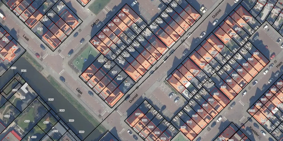 Gebruik de zoekbalk of klik op een perceel voor informatie over de adressen binnen dit perceel.