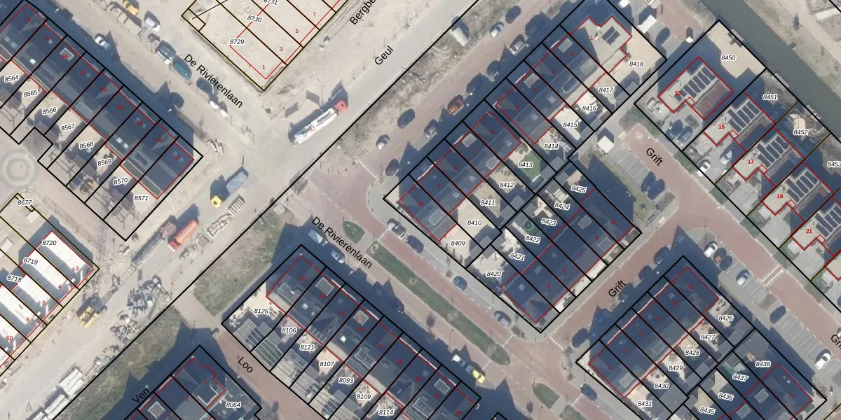 Het perceel waarop Geul 10 staat heeft een oppervlakte van 187 m². Dit is een middelgroot perceel. De perceeloppervlakte wordt geregistreerd door het Kadaster. Gedetailleerde informatie over de maten van dit perceel kunt u vinden in het rapport Kadastrale kaart met maatvoering van Geul 10.