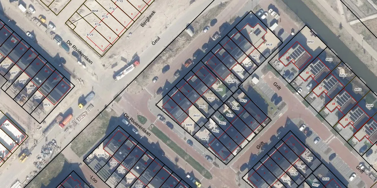 Geul 8 is gelegen op kadastraal perceel MSR00K8411. Deze kadastrale aanduiding is uniek en wordt gebruikt door het Kadaster om eigendomsrechten en andere zakelijke rechten vast te leggen. Het perceel maakt onderdeel uit van de kadastrale gemeente Monster.