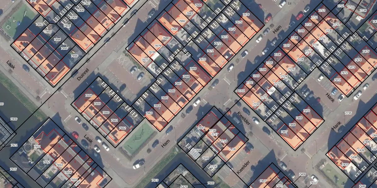 Gebruik de zoekbalk of klik op een perceel voor informatie over de adressen binnen dit perceel.