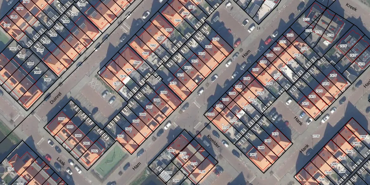Gebruik de zoekbalk of klik op een perceel voor informatie over de adressen binnen dit perceel.