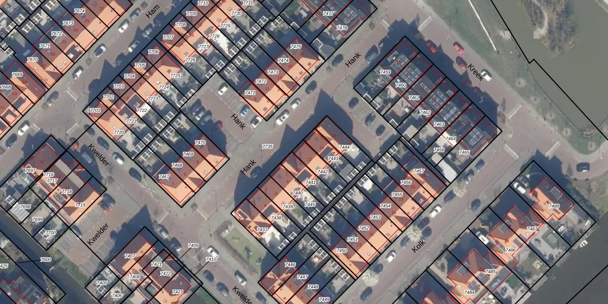 Gebruik de zoekbalk of klik op een perceel voor informatie over de adressen binnen dit perceel.