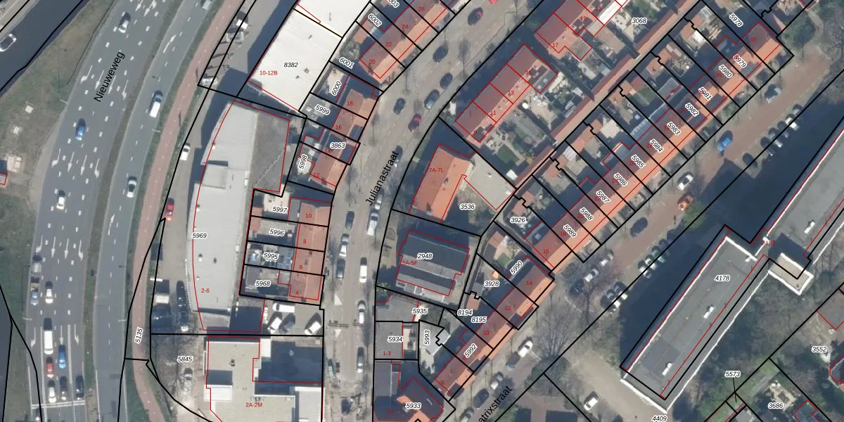 Het perceel waarop Julianastraat 7-L staat heeft een oppervlakte van 467 m². Dit is een groot perceel. De perceeloppervlakte wordt geregistreerd door het Kadaster. Gedetailleerde informatie over de maten van dit perceel kunt u vinden in het rapport Kadastrale kaart met maatvoering van Julianastraat 7-L.