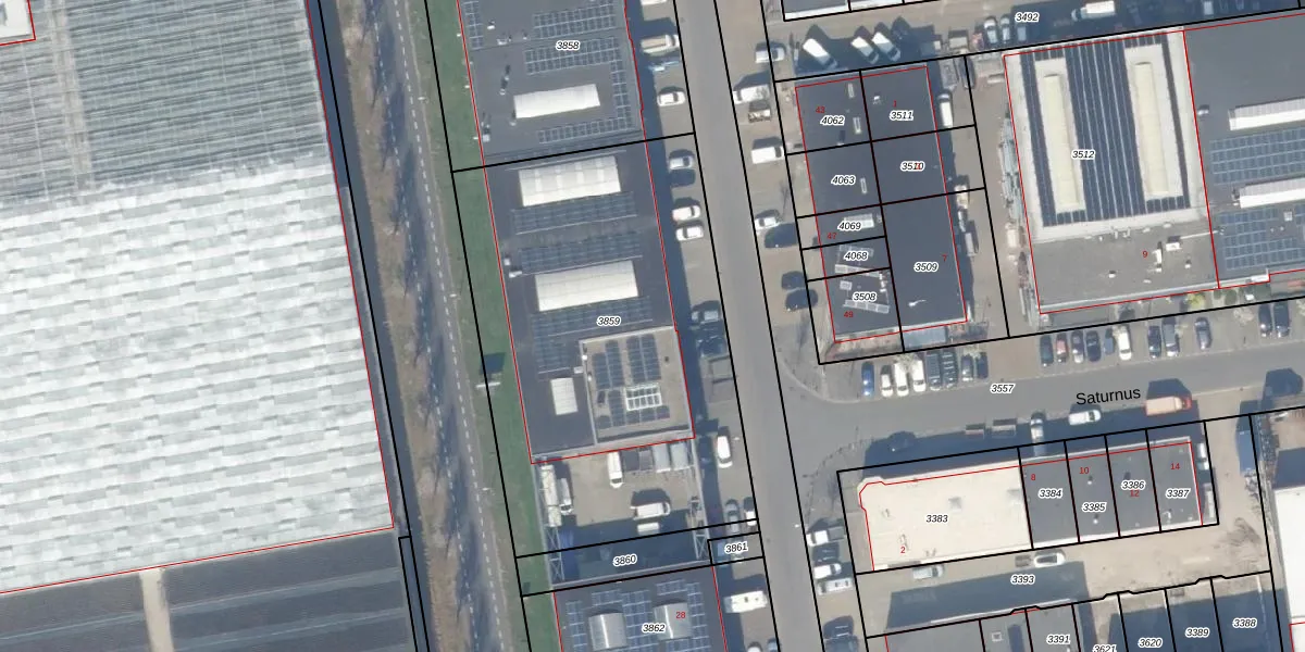 Het perceel waarop Jupiter 24 staat heeft een oppervlakte van 2259 m². Dit is een zeer groot perceel. De perceeloppervlakte wordt geregistreerd door het Kadaster. Gedetailleerde informatie over de maten van dit perceel kunt u vinden in het rapport Kadastrale kaart met maatvoering van Jupiter 24.