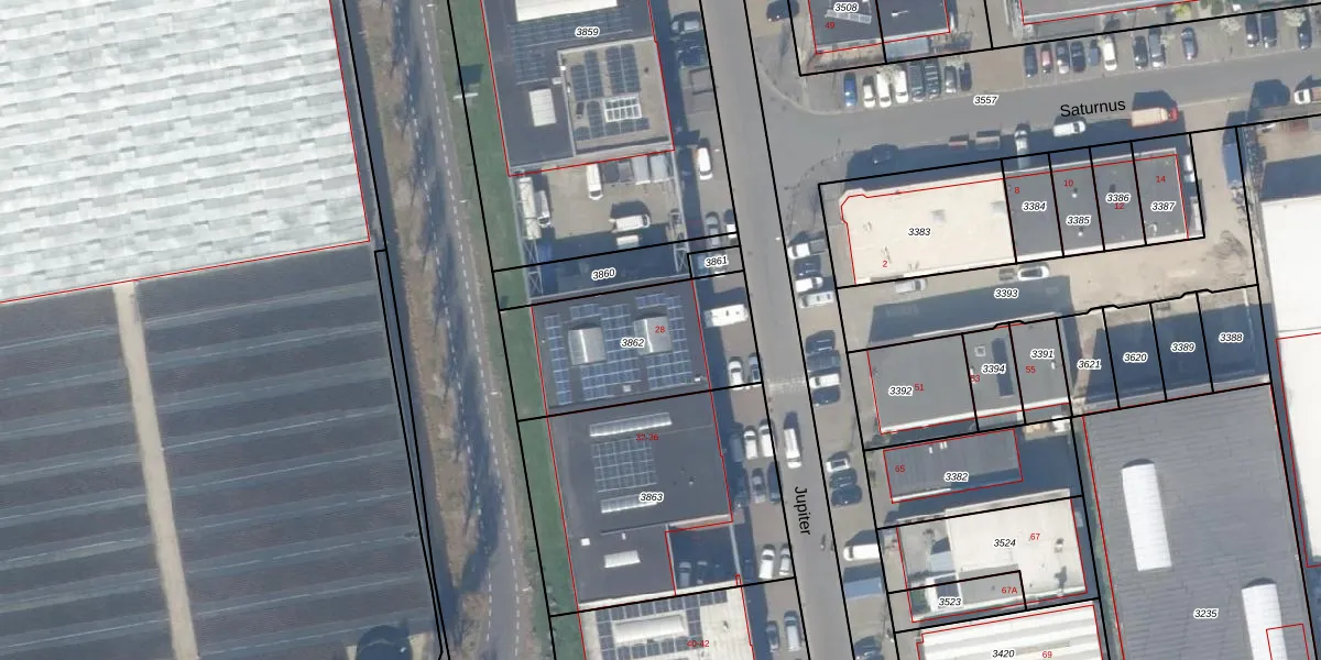 Het perceel waarop Jupiter 28 staat heeft een oppervlakte van 639 m². Dit is een groot perceel. De perceeloppervlakte wordt geregistreerd door het Kadaster. Gedetailleerde informatie over de maten van dit perceel kunt u vinden in het rapport Kadastrale kaart met maatvoering van Jupiter 28.