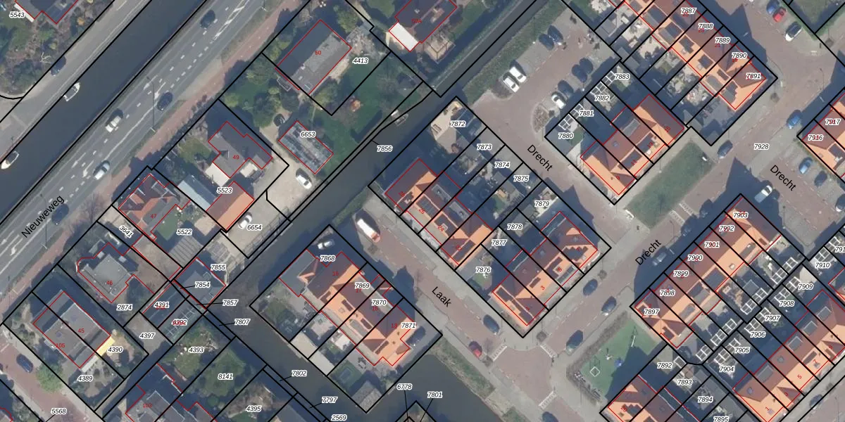 Gebruik de zoekbalk of klik op een perceel voor informatie over de adressen binnen dit perceel.