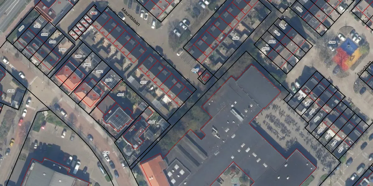 Het perceel waarop Mauritslaan 52 staat heeft een oppervlakte van 1516 m². Dit is een zeer groot perceel. De perceeloppervlakte wordt geregistreerd door het Kadaster. Gedetailleerde informatie over de maten van dit perceel kunt u vinden in het rapport Kadastrale kaart met maatvoering van Mauritslaan 52.