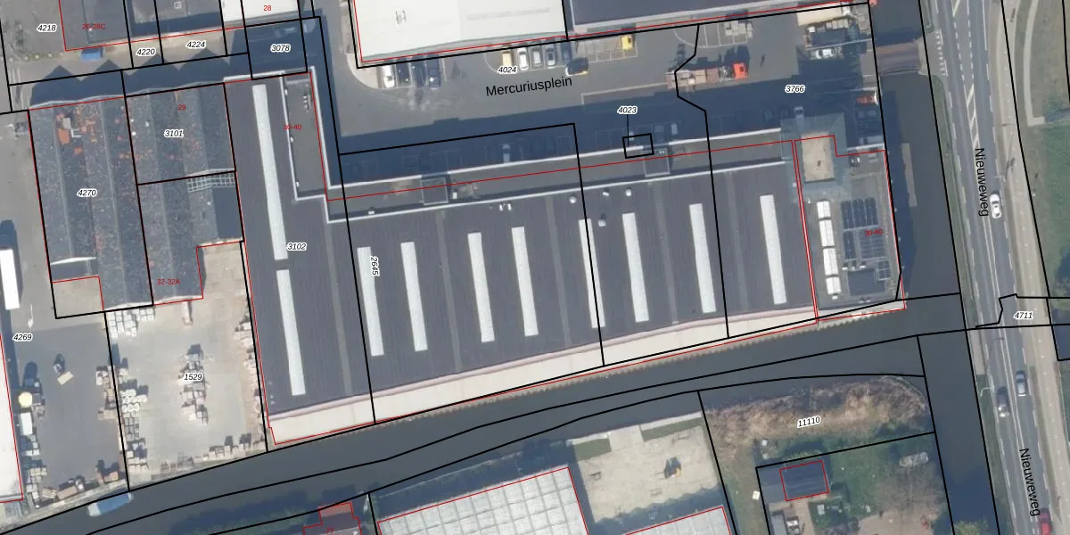 Het perceel waarop Mercuriusplein 34 staat heeft een oppervlakte van 2165 m². Dit is een zeer groot perceel. De perceeloppervlakte wordt geregistreerd door het Kadaster. Gedetailleerde informatie over de maten van dit perceel kunt u vinden in het rapport Kadastrale kaart met maatvoering van Mercuriusplein 34.