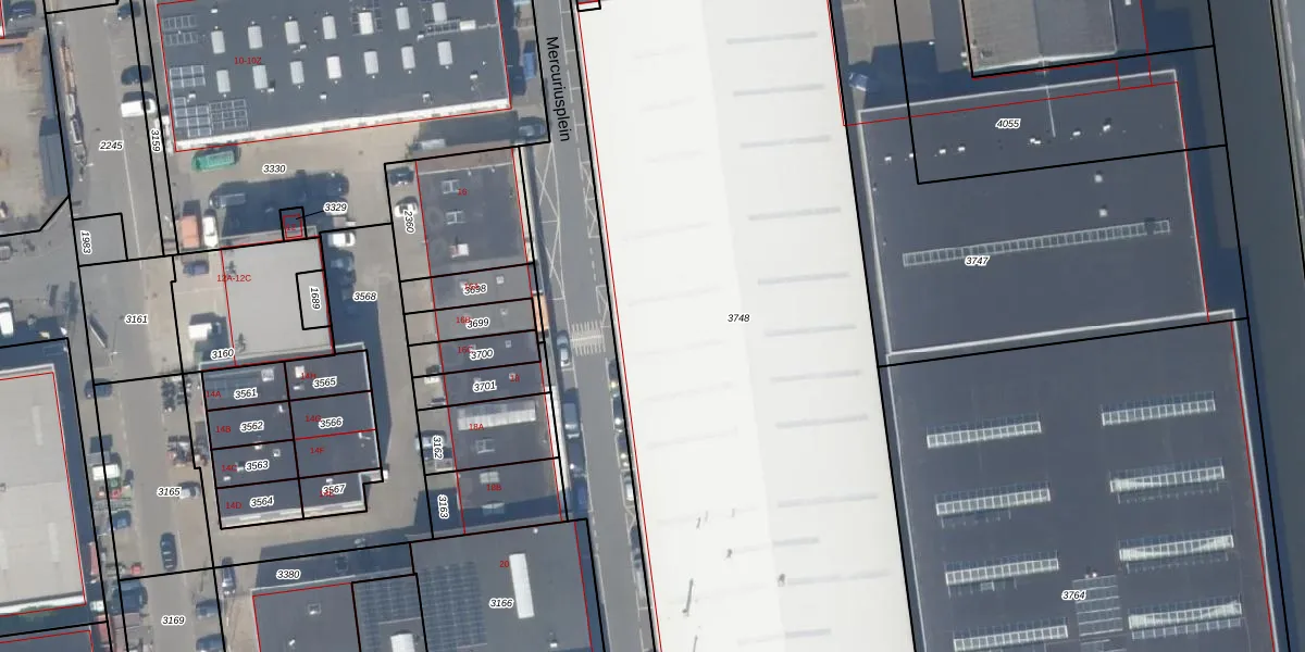Het perceel waarop Mercuriusplein 4-A staat heeft een oppervlakte van 6500 m². Dit is een zeer groot perceel. De perceeloppervlakte wordt geregistreerd door het Kadaster. Gedetailleerde informatie over de maten van dit perceel kunt u vinden in het rapport Kadastrale kaart met maatvoering van Mercuriusplein 4-A.