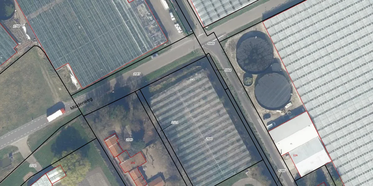 Middenweg 8 is gelegen op kadastraal perceel MSR00I2500. Deze kadastrale aanduiding is uniek en wordt gebruikt door het Kadaster om eigendomsrechten en andere zakelijke rechten vast te leggen. Het perceel maakt onderdeel uit van de kadastrale gemeente Monster.
