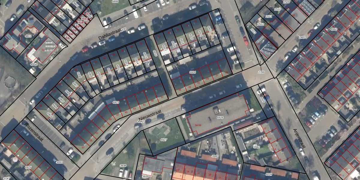Het perceel waarop Nieuwstraat 35 staat heeft een oppervlakte van 598 m². Dit is een groot perceel. De perceeloppervlakte wordt geregistreerd door het Kadaster. Gedetailleerde informatie over de maten van dit perceel kunt u vinden in het rapport Kadastrale kaart met maatvoering van Nieuwstraat 35.
