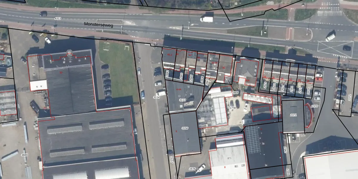 Het adres is gelegen op perceel 3113 in de sectie H en de kadastrale gemeente Monster. De kadastrale aanduiding is aldus MSR00-H-3113. Het perceel is kleiner dan gemiddeld in Monster. Het perceel is 316 m² groot, terwijl het gemiddelde ligt op 1818,86 m². De grootste perceeloppervlakte in de kadastrale gemeente is 5,16 km². De kleinste oppervlakte bedraagt 0 m². Op het perceel liggen in totaal 2 adressen. De huidige grenzen van het perceel zijn digitaal in de Basisregistratie Kadaster (BRK) geregistreerd op 14-04-1999.
