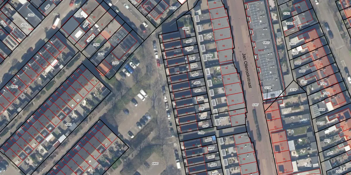 Gebruik de zoekbalk of klik op een perceel voor informatie over de adressen binnen dit perceel.