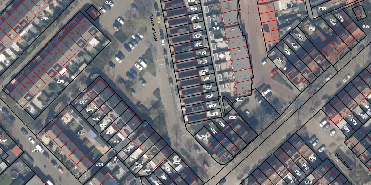 Het perceel waarop Sutoriusstraat 7 staat heeft een oppervlakte van 100 m². Dit is een middelgroot perceel. De perceeloppervlakte wordt geregistreerd door het Kadaster. Gedetailleerde informatie over de maten van dit perceel kunt u vinden in het rapport Kadastrale kaart met maatvoering van Sutoriusstraat 7.