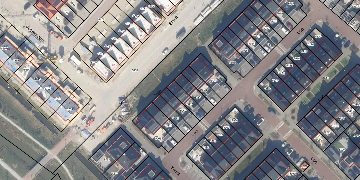 Gebruik de zoekbalk of klik op een perceel voor informatie over de adressen binnen dit perceel.