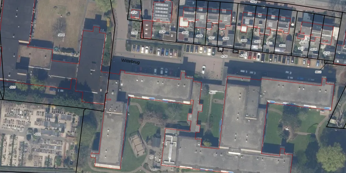 Het perceel waarop Wittebrug 24 staat heeft een oppervlakte van 1,2 ha. Dit is een zeer groot perceel. De perceeloppervlakte wordt geregistreerd door het Kadaster. Gedetailleerde informatie over de maten van dit perceel kunt u vinden in het rapport Kadastrale kaart met maatvoering van Wittebrug 24.