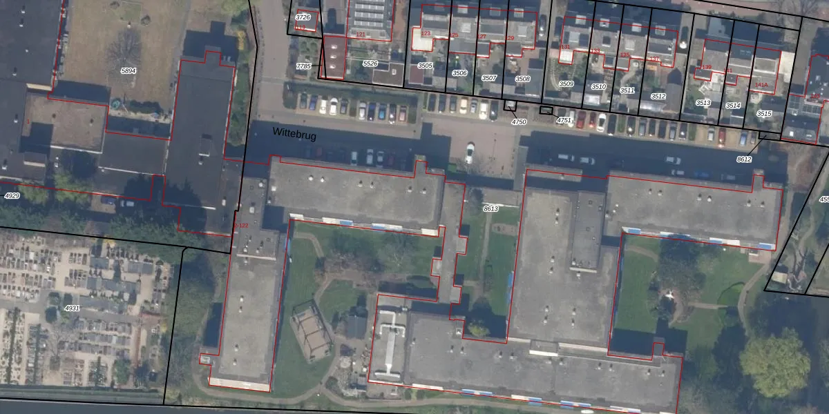 Het perceel waarop Wittebrug 38 staat heeft een oppervlakte van 1,2 ha. Dit is een zeer groot perceel. De perceeloppervlakte wordt geregistreerd door het Kadaster. Gedetailleerde informatie over de maten van dit perceel kunt u vinden in het rapport Kadastrale kaart met maatvoering van Wittebrug 38.