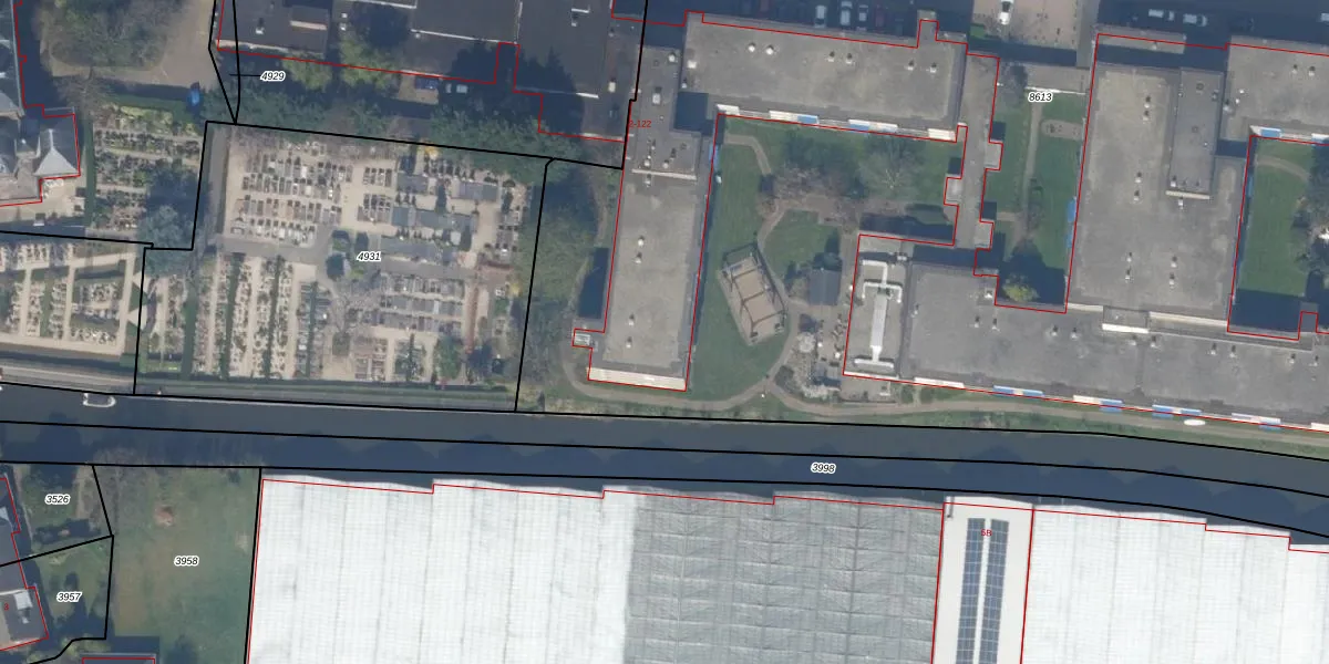 Het perceel waarop Wittebrug 43 staat heeft een oppervlakte van 1,2 ha. Dit is een zeer groot perceel. De perceeloppervlakte wordt geregistreerd door het Kadaster. Gedetailleerde informatie over de maten van dit perceel kunt u vinden in het rapport Kadastrale kaart met maatvoering van Wittebrug 43.