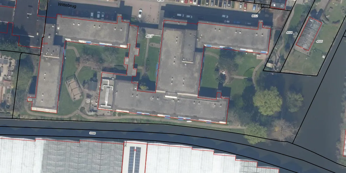 Het perceel waarop Wittebrug 45 staat heeft een oppervlakte van 1,2 ha. Dit is een zeer groot perceel. De perceeloppervlakte wordt geregistreerd door het Kadaster. Gedetailleerde informatie over de maten van dit perceel kunt u vinden in het rapport Kadastrale kaart met maatvoering van Wittebrug 45.