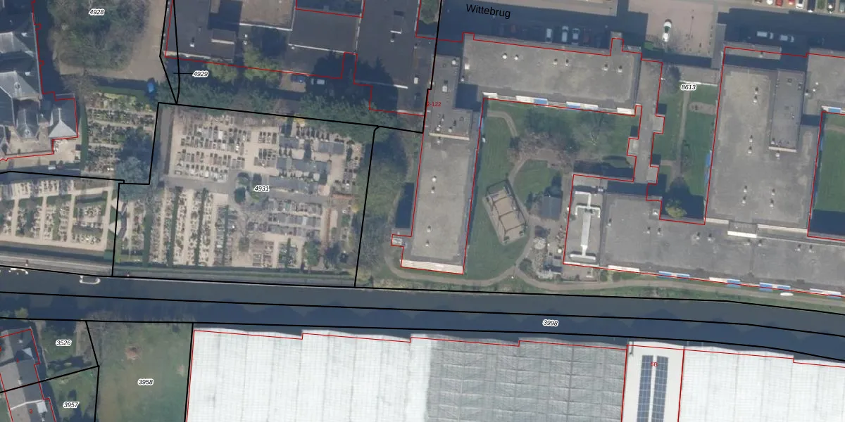 Het perceel waarop Wittebrug 6 staat heeft een oppervlakte van 1,2 ha. Dit is een zeer groot perceel. De perceeloppervlakte wordt geregistreerd door het Kadaster. Gedetailleerde informatie over de maten van dit perceel kunt u vinden in het rapport Kadastrale kaart met maatvoering van Wittebrug 6.