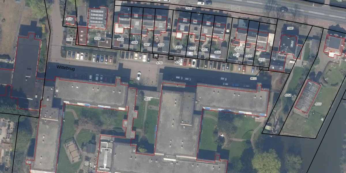 Het perceel waarop Wittebrug 78 staat heeft een oppervlakte van 1,2 ha. Dit is een zeer groot perceel. De perceeloppervlakte wordt geregistreerd door het Kadaster. Gedetailleerde informatie over de maten van dit perceel kunt u vinden in het rapport Kadastrale kaart met maatvoering van Wittebrug 78.