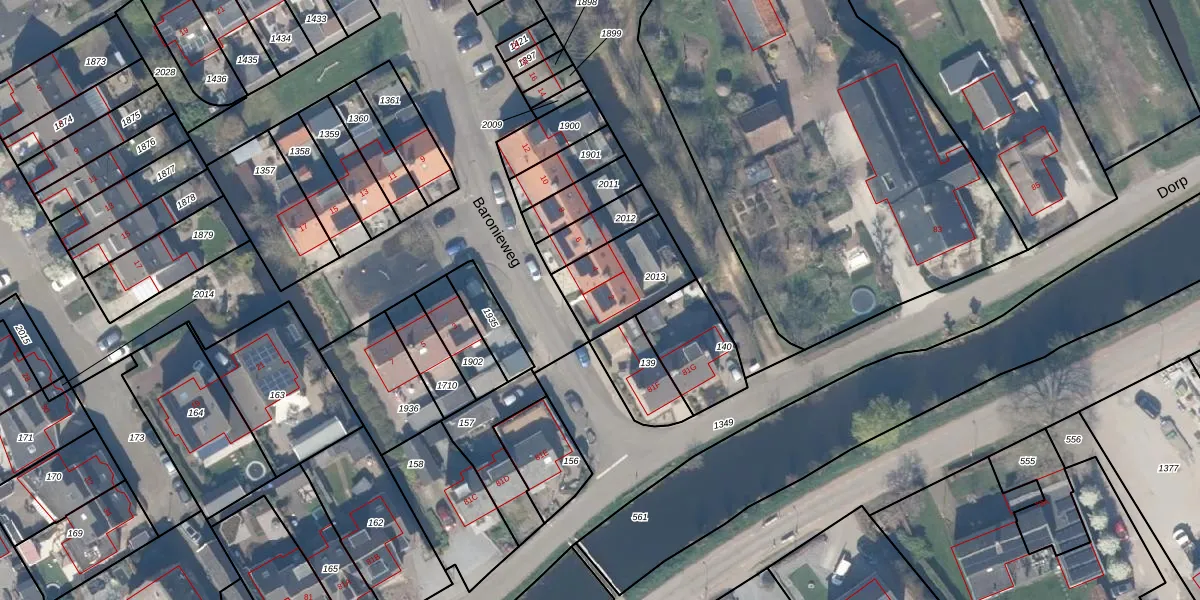 Het perceel waarop Baronieweg 2 staat heeft een oppervlakte van 278 m². Dit is een middelgroot perceel. De perceeloppervlakte wordt geregistreerd door het Kadaster. Gedetailleerde informatie over de maten van dit perceel kunt u vinden in het rapport Kadastrale kaart met maatvoering van Baronieweg 2.
