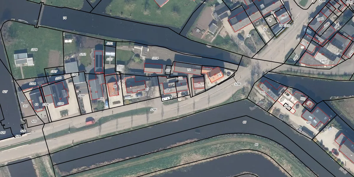 Het adres is gelegen op perceel 121 in de sectie D en de kadastrale gemeente Lopik. De kadastrale aanduiding is aldus LPK00-D-121. Het perceel is kleiner dan gemiddeld in Lopik. Het perceel is 75 m² groot, terwijl het gemiddelde ligt op 1,1 ha. Het grootste perceel in de kadastrale gemeente is 33,7 ha. Het kleinste perceel heeft een oppervlakte van 0 m². Er zijn geen andere adressen aanwezig op het perceel. De laatste wijziging in het de Basisregistratie Kadaster (BRK) was op 19-12-2002.