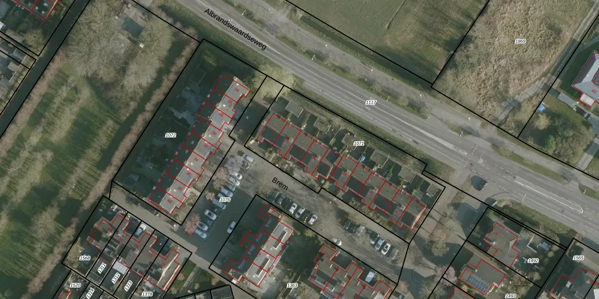 Het perceel waarop Brem 18 staat heeft een oppervlakte van 1564 m². Dit is een zeer groot perceel. De perceeloppervlakte wordt geregistreerd door het Kadaster. Gedetailleerde informatie over de maten van dit perceel kunt u vinden in het rapport Kadastrale kaart met maatvoering van Brem 18.