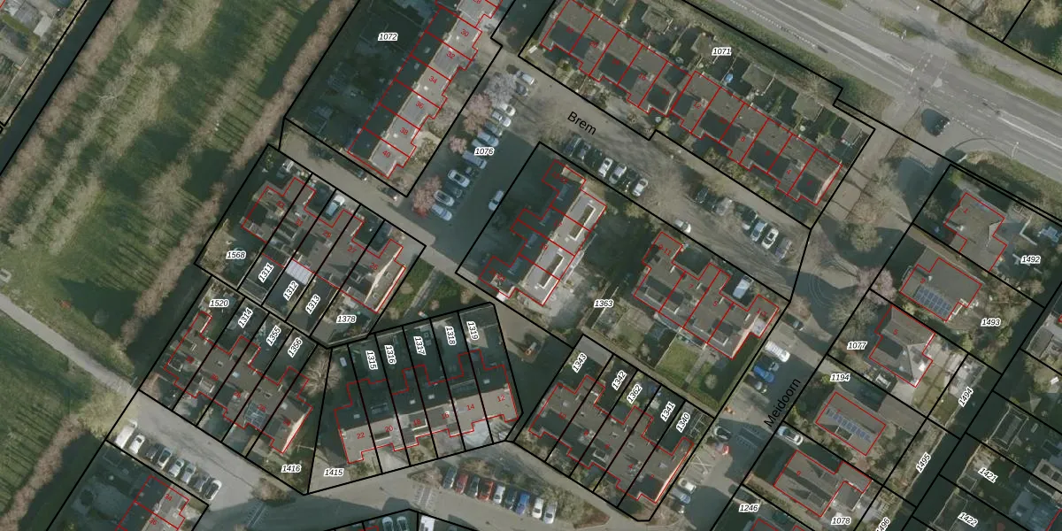 Het perceel waarop Brem 21 staat heeft een oppervlakte van 1532 m². Dit is een zeer groot perceel. De perceeloppervlakte wordt geregistreerd door het Kadaster. Gedetailleerde informatie over de maten van dit perceel kunt u vinden in het rapport Kadastrale kaart met maatvoering van Brem 21.