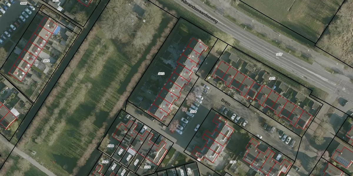 Het perceel waarop Brem 34 staat heeft een oppervlakte van 1505 m². Dit is een zeer groot perceel. De perceeloppervlakte wordt geregistreerd door het Kadaster. Gedetailleerde informatie over de maten van dit perceel kunt u vinden in het rapport Kadastrale kaart met maatvoering van Brem 34.