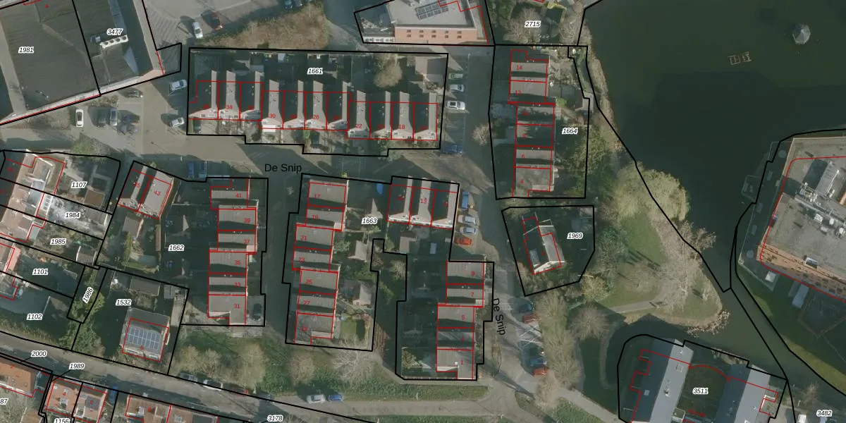 Het perceel waarop De Snip 13 staat heeft een oppervlakte van 1710 m². Dit is een zeer groot perceel. De perceeloppervlakte wordt geregistreerd door het Kadaster. Gedetailleerde informatie over de maten van dit perceel kunt u vinden in het rapport Kadastrale kaart met maatvoering van De Snip 13.