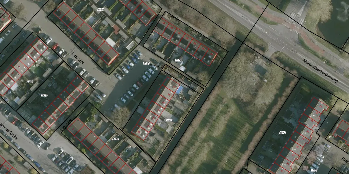 Het perceel waarop Liguster 17 staat heeft een oppervlakte van 1165 m². Dit is een zeer groot perceel. De perceeloppervlakte wordt geregistreerd door het Kadaster. Gedetailleerde informatie over de maten van dit perceel kunt u vinden in het rapport Kadastrale kaart met maatvoering van Liguster 17.