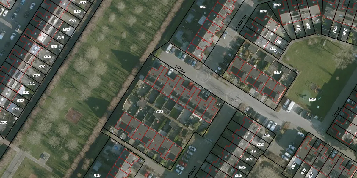 Het perceel waarop Ribes 8 staat heeft een oppervlakte van 2309 m². Dit is een zeer groot perceel. De perceeloppervlakte wordt geregistreerd door het Kadaster. Gedetailleerde informatie over de maten van dit perceel kunt u vinden in het rapport Kadastrale kaart met maatvoering van Ribes 8.