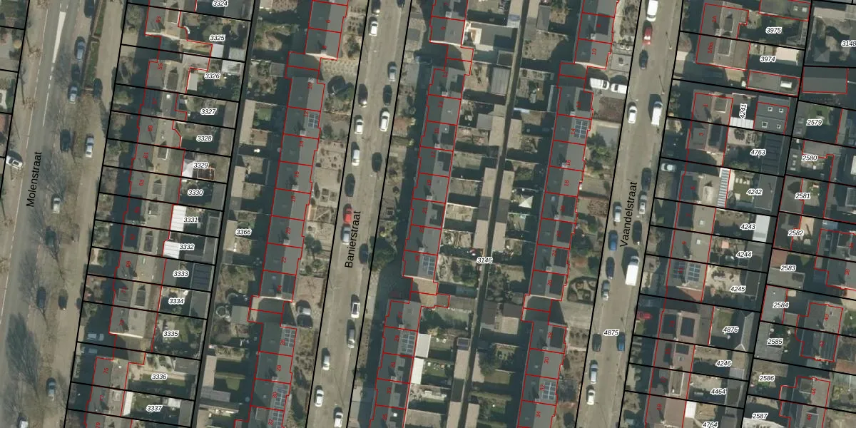 Banierstraat 21 is gelegen op kadastraal perceel PSB00E3146. Deze kadastrale aanduiding is uniek en wordt gebruikt door het Kadaster om eigendomsrechten en andere zakelijke rechten vast te leggen. Het perceel maakt onderdeel uit van de kadastrale gemeente Prinsenbeek.
