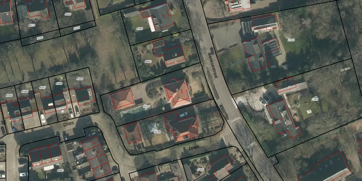 Het perceel waarop Beeksestraat 81-A staat heeft een oppervlakte van 1165 m². Dit is een zeer groot perceel. De perceeloppervlakte wordt geregistreerd door het Kadaster. Gedetailleerde informatie over de maten van dit perceel kunt u vinden in het rapport Kadastrale kaart met maatvoering van Beeksestraat 81-A.
