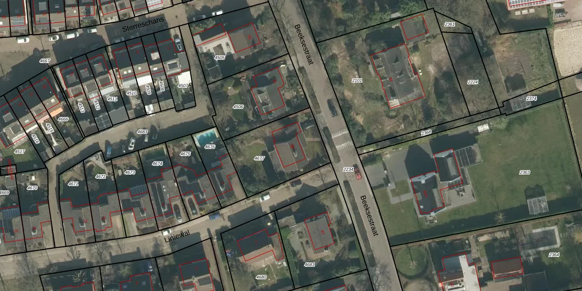 Beeksestraat 89 is gelegen op kadastraal perceel PSB00E4677. Deze kadastrale aanduiding is uniek en wordt gebruikt door het Kadaster om eigendomsrechten en andere zakelijke rechten vast te leggen. Het perceel maakt onderdeel uit van de kadastrale gemeente Prinsenbeek.
