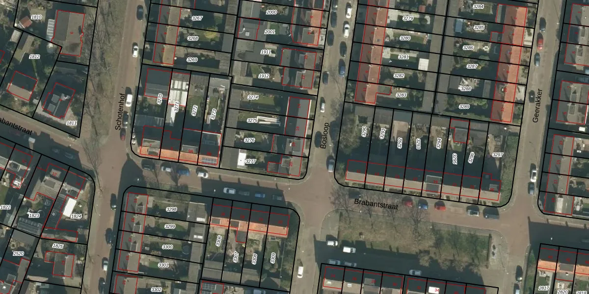 Het perceel waarop Bosloop 18 staat heeft een oppervlakte van 195 m². Dit is een middelgroot perceel. De perceeloppervlakte wordt geregistreerd door het Kadaster. Gedetailleerde informatie over de maten van dit perceel kunt u vinden in het rapport Kadastrale kaart met maatvoering van Bosloop 18.