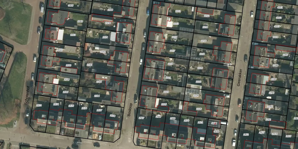 Gebruik de zoekbalk of klik op een perceel voor informatie over de adressen binnen dit perceel.