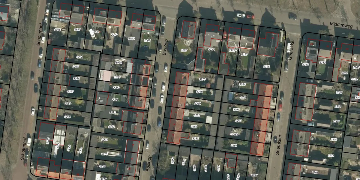 Het perceel waarop Bosloop 3 staat heeft een oppervlakte van 195 m². Dit is een middelgroot perceel. De perceeloppervlakte wordt geregistreerd door het Kadaster. Gedetailleerde informatie over de maten van dit perceel kunt u vinden in het rapport Kadastrale kaart met maatvoering van Bosloop 3.