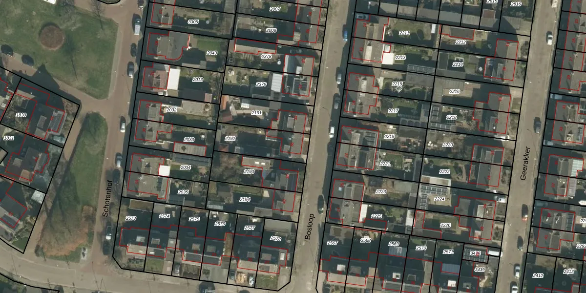 Het perceel waarop Bosloop 36 staat heeft een oppervlakte van 317 m². Dit is een groot perceel. De perceeloppervlakte wordt geregistreerd door het Kadaster. Gedetailleerde informatie over de maten van dit perceel kunt u vinden in het rapport Kadastrale kaart met maatvoering van Bosloop 36.